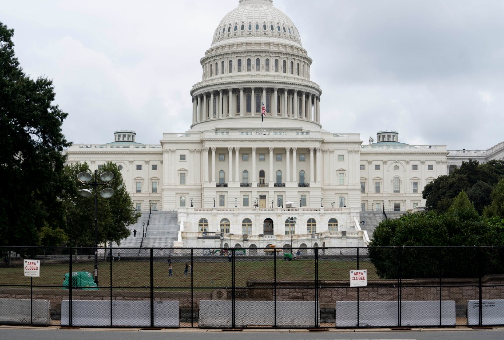 9月17日,美国首都华盛顿国会大厦周边设置起金属隔离围栏。(新华社记者刘杰摄)